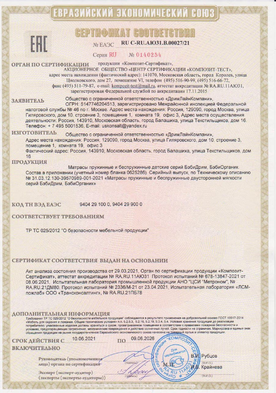 Состав детского матраса